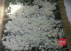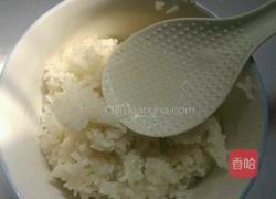 5.米饭加寿司醋,少许白糖和盐拌匀。(各比率是5:5:1)