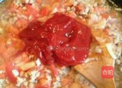 7.倒入番茄酱继续炒入味,加黑胡椒